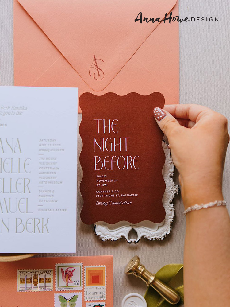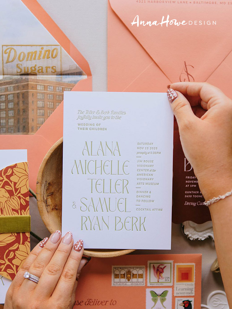 Anna Howe Design is a wedding stationery studio creating custom invitations that turn your love story into something tangible. From save the dates to day-of details, we help couples design paper goods that set the tone, feel deeply personal, and are meant to be cherished long after the day is over. If you’re planning a wedding and want thoughtful guidance through every detail, you’re in the right place.