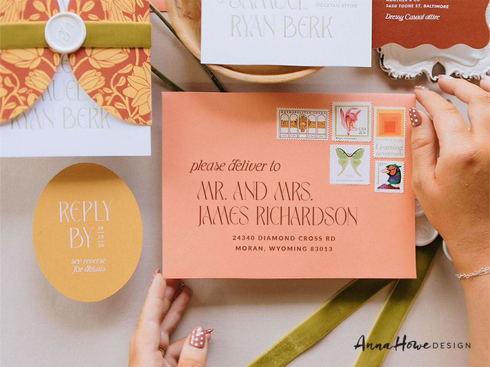 Do not stop at the invitation suite. Extend your visual identity to envelopes, table numbers, bar menus, escort cards, and programs. Thoughtful paper goods quietly elevate the entire guest experience.