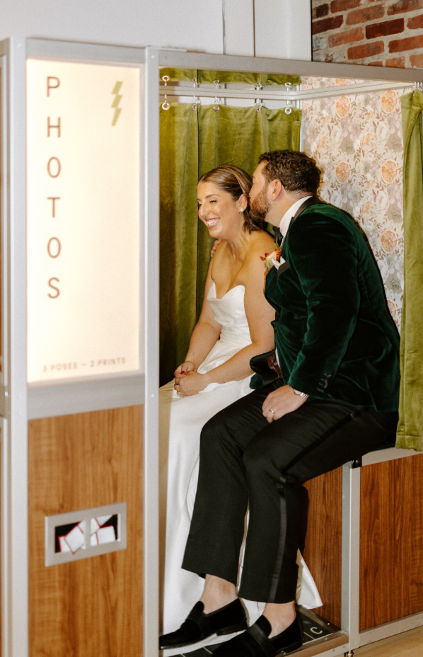 Their approach: Fashion-forward, but deeply personal. A clean, structured gown with no fuss. A groom in deep green velvet. Both looks felt confident, intentional, and timeless.