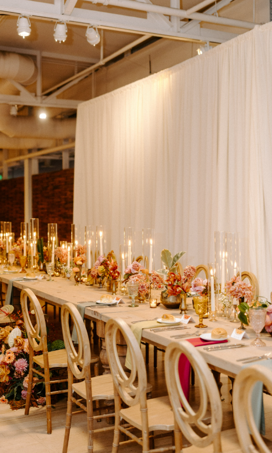 Their approach: They skipped the blank slate. By choosing a venue filled with color, texture, and personality, they let the space do some of the design work for them.