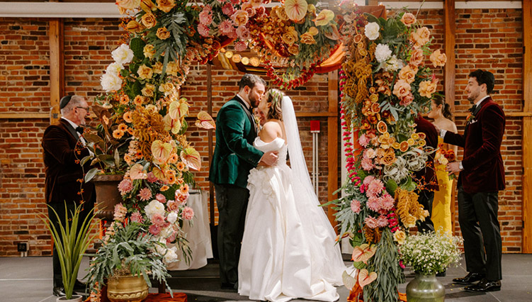 Their approach: They skipped the blank slate. By choosing a venue filled with color, texture, and personality, they let the space do some of the design work for them.