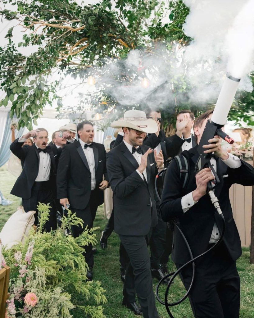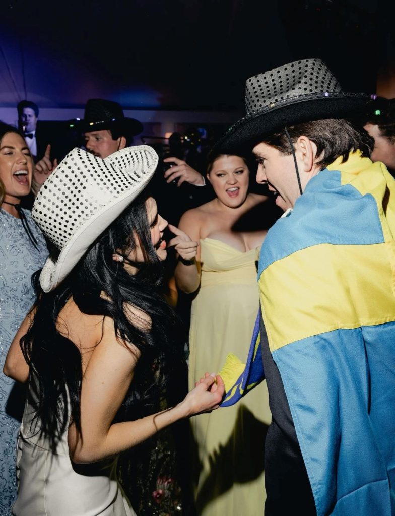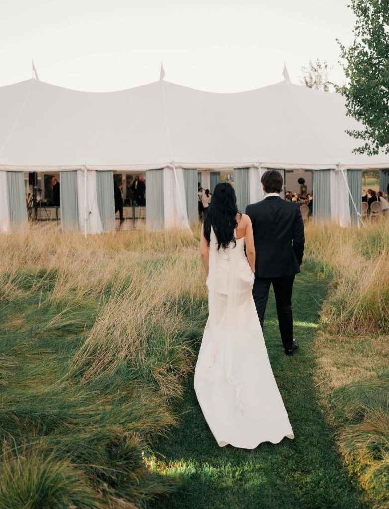 Here’s what we keep coming back to when we look at these photos: Christina and Gregory made a wedding that was completely, unmistakably theirs. It was elegant and it was wild. It had a pickleball tournament on Friday and Swedish traditions at dinner on Saturday. It had a cathedral floral arch and a cowboy boot on the invitation. It had trees inside a tent and a drift boat on a lake.